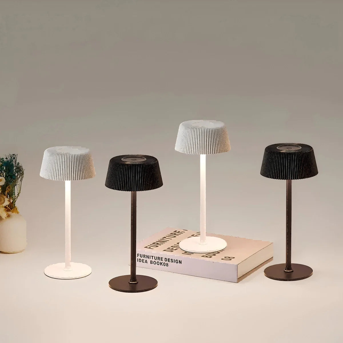 The Tivora Aura Touch LED Desk Lamp is designed for calm spaces and flexible use. Its slim aluminum body and softly pleated acrylic shade diffuse light evenly, creating a comfortable glow without glare. The form feels balanced and modern, suited for bedrooms, living rooms, bars, or intimate table settings.